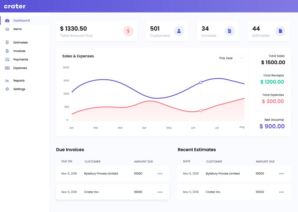 Crater Invoicing muhasebe çözümü, profesyonel faturalar, teklifler, harcamalar vb. hareketleri pratik ve kullanışlı bir şekilde çözen açık kaynaklı bir muhasebe…